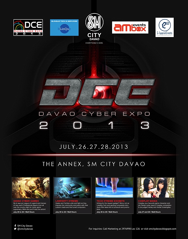 Check out the schedule of events for Davao Cyber Expo 2013 to be held at The Annex of SM City Davao from July 26-28, 2013.