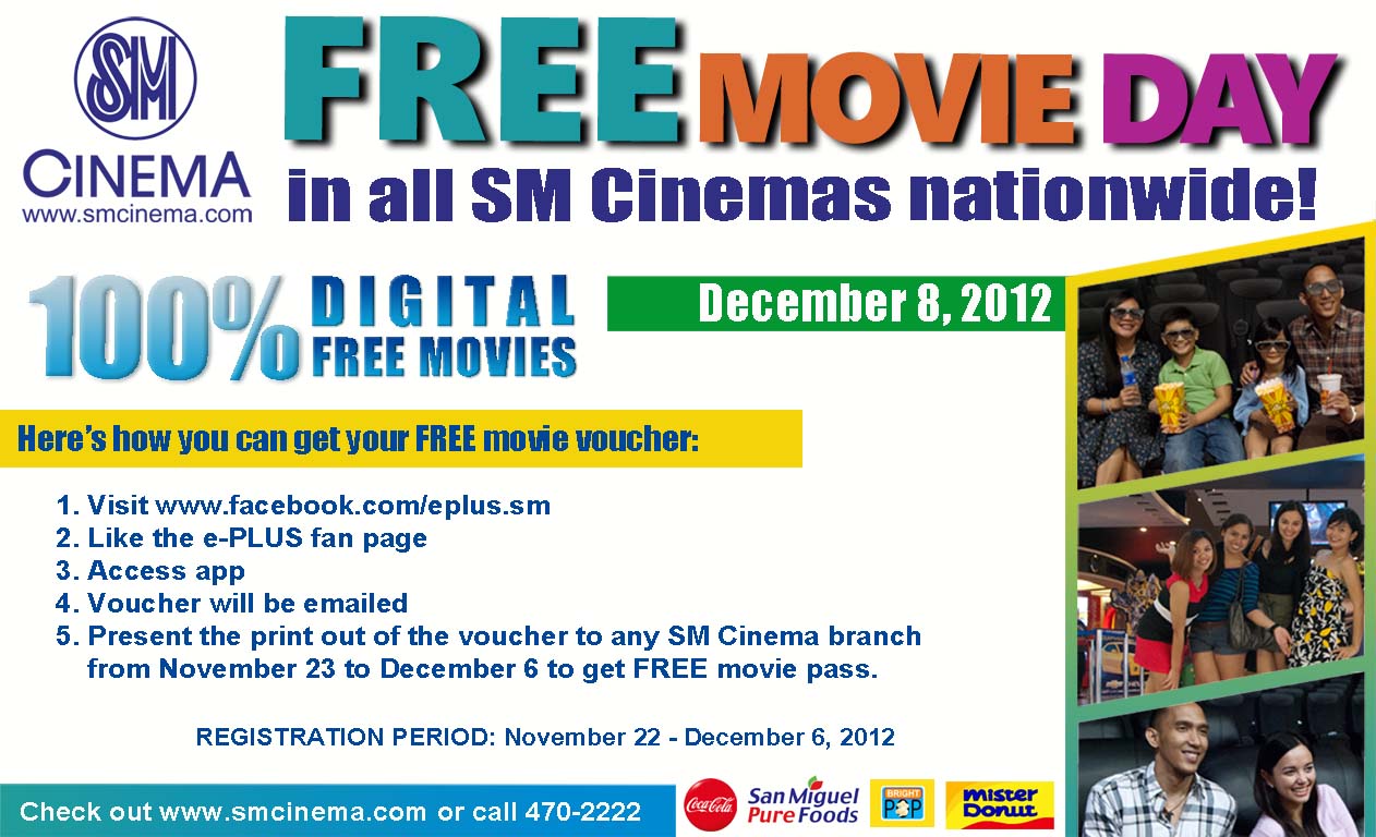 Registration for SM Cinema’s Free Movie Day is from November 22 to December 6, 2012. Just follow these five easy steps: