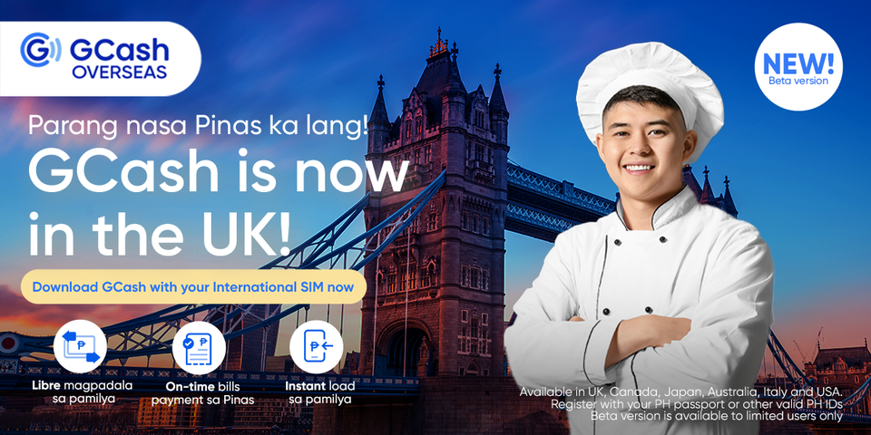 You can now download the GCash app with your International SIM now for those in the United Kingdom (UK) and in Canada. It is also available in the USA, Italy and Australia. GCash Overseas is currently on Beta version. You can be one of the first 1,000 Filipinos abroad to try it.